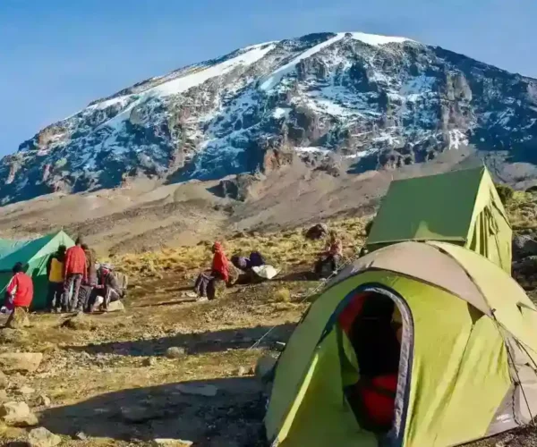A steep climb up the eastern wall leads us just below the Heim Glacier, where we may have some spectacular views of Kilimanjaro. We then take a steep exit up the Great Barranco Wall, which divides us from the southeastern slopes of Kibo, the trail continues down into the alpine desert of the Karanga Valley, finally we have a steep climb up to Karanga Camp Barranco camp to Karanga camp (4,000 m): 4-5 hours walking.