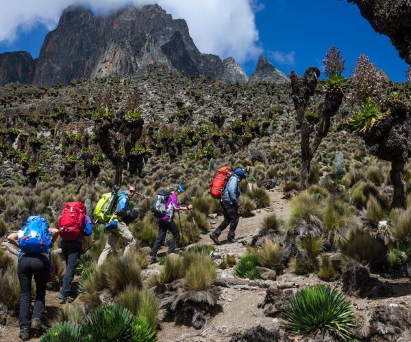 Leave at 0300 hrs for predawn summit attempt, trekking for 3-4 hours across bare rock and scree slopes characteristic of the alpine region up to Pt. Lenana (4985m), the hikers summit, arriving in time to catch the African sunrise. Later descend to Shiptons camp (Sirimon route) for breakfast. After breakfast, begin a 5 hour descent via Mackinder`s valley to the Old Moses camp (3,300m). The descent is gentle and it offers ample time to enjoy fascinating scenery which includes the moorlands before reaching the camp. Dinner and overnight at Old Moses camp.